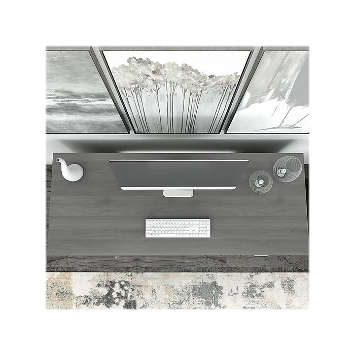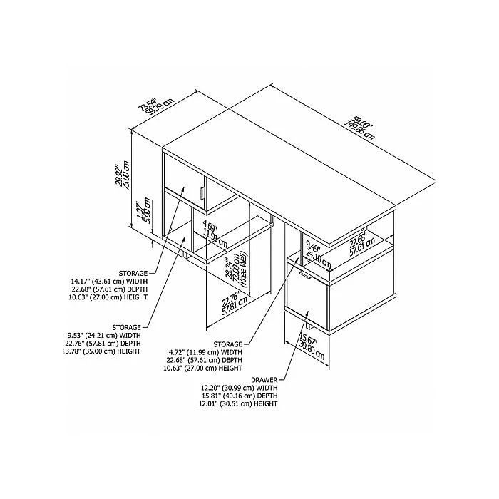- 60″W computer desk with storage presents a great workspace solution for modern home offices