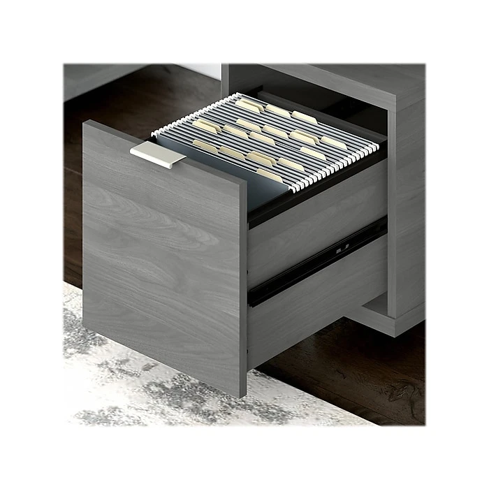 - File drawer opens on smooth full-extension ball bearing slides for an effortless reach to legal-, letter-, and A4-size paperwork