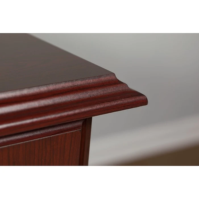 Update your workspace with the charm and elegance of the Bennington Collection 3-piece furniture set from kathy ireland® Home by Bush Furniture. Enjoy the generously sized work surface made of thermally fused laminate for durability and long lasting beauty with a rich Harvest Cherry finish you’ll love for years to come. A place for everything, the Manager’s Desk offers two box drawers and three file drawers while Credenza provides a convenient pull-out keyboard shelf, two box drawers and two closed compartments with adjustable shelf inside. Three adjustable and two fixed shelves on bookcase plus decorative edge detailing which adds to its refined elegance and charm. Bring a sense of timeless style and tradition into your home or workspace with the Bennington Collection. Meets ANSI BIFMA furniture standards for safety and performance backed by a 6 year manufacturer’s warranty.