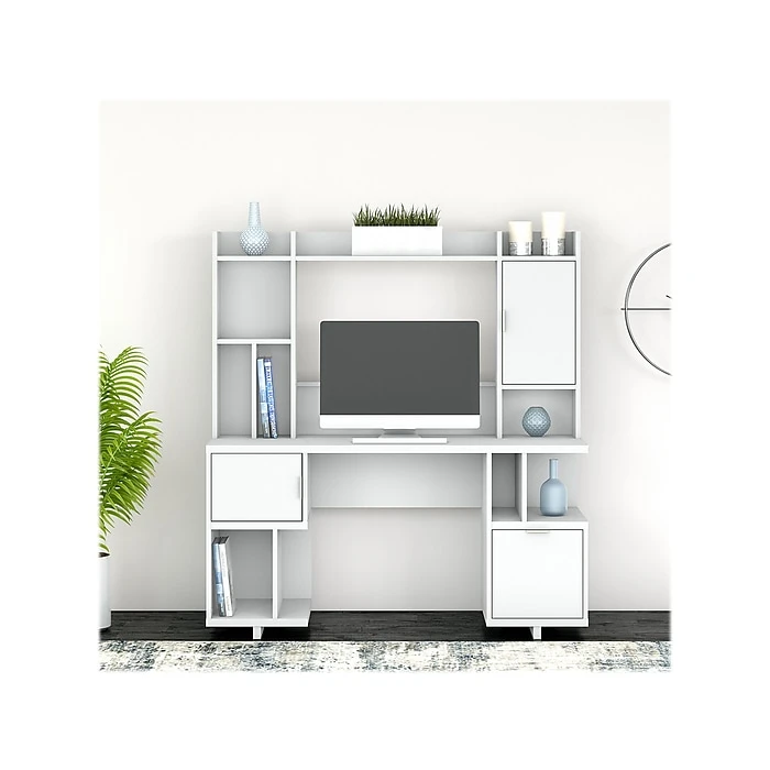 - Bundle includes: computer desk with storage, desk hutch