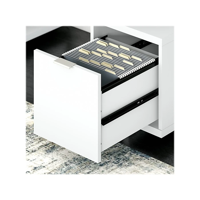 - Built-in storage cabinets and file drawer ensure that the paperwork and supplies you need are always within reach
