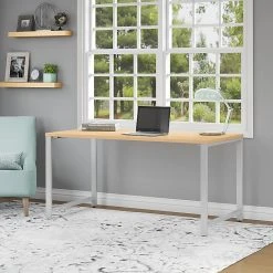 Bush Business Furniture 400 Series 71” Laminate Table Desk with 3-Drawer Mobile File Cabinet, White