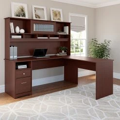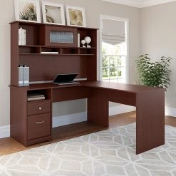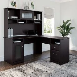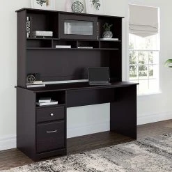 Bush Furniture Cabot 60W Computer Desk with Hutch and Drawers – Espresso Oak | Laminate Office Desk
