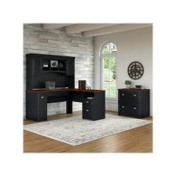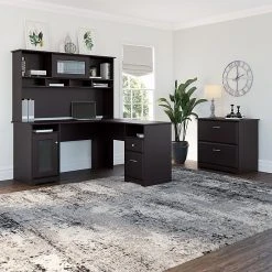 Bush Furniture Cabot L-Shaped Desk with Hutch & Storage Cabinet – Harvest Cherry (CAB016HVC)