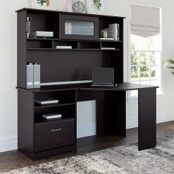 Bush Furniture Cabot Corner Desk With Hutch | Espresso Oak Laminate | Modern Home Office Solution