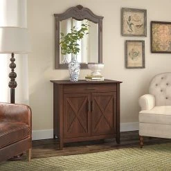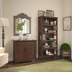 Bush Furniture Key West Desktop Organizer in Bing Cherry | Laminate Desktop Storage Solution