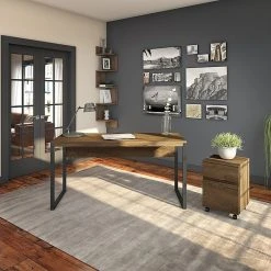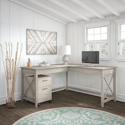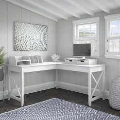 Bush Furniture Key West 60W L-Shaped Desk with Desktop Organizers – Pure White Oak (KWS015WT)