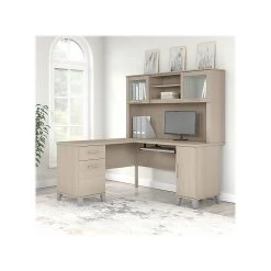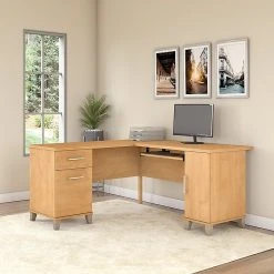 Bush Furniture Somerset 60W L Shaped Desk in Maple Cross – Space-Saving Laminate Office Desk