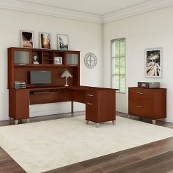 Bush Furniture Somerset 72W L-Shaped Desk With Hutch & Lateral File, Hansen Cherry (SET009HC)