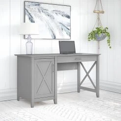Bush Furniture Key West 54″ Corner Computer Desk With Storage | Washed Gray | Laminated Wood
