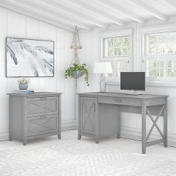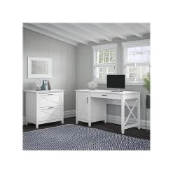Bush Furniture Key West 54″ Computer Desk Bundle in Pure White Oak | Durable Laminated Wood Design