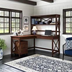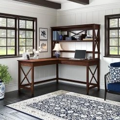 Bush Furniture Key West 60″ L-Shaped Desk in Bing Cherry – Modern Laminated Wood Design