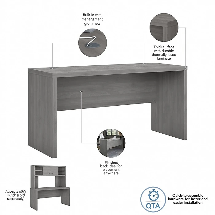 - Accepts a 60″W hutch (sold separately) to create a coordinated office set with convenient storage
