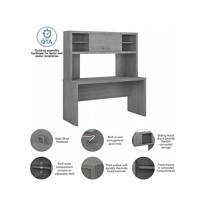 - Bundle includes: 60″W credenza desk, 60″W hutch