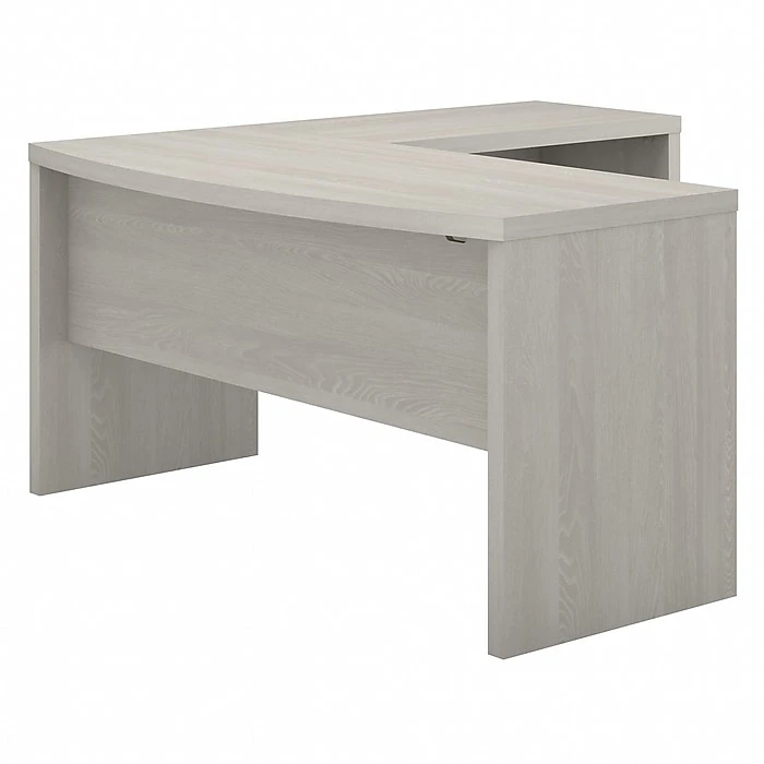 The Office by Kathy Ireland® Echo L Shaped Bow Front Desk creates a strong presence perfect for those whose passion for business is only matched by their fashionable tastes. Blending an attractive finish with appealing wide lines gives a residential feel to the modern workspace. Thick and durable, a thermally fused laminate finish endures years of daily use to maintain the elegance of the office desk. Spread out on the spacious L Shaped surface with your computer, paperwork or any other tasks of the day. The Bow Front design encourages placement in the middle of an office or room and provides an area for guests to pull up a chair and collaborate. Attach the 36W Return to either side of the 60W Desk to form a left or right-handed layout. From Office by Kathy Ireland® and Bush Business Furniture, Echo comes with a 3 Year Warranty and meets ANSI/BIFMA standards for safety and performance.