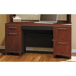Bush Business Furniture Enterprise 60W Double Pedestal Desk – Mocha Cherry Laminate Workspace