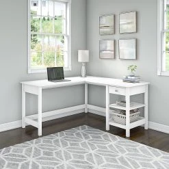 Bush Furniture Broadview 60″ L-Shaped Desk, Pure White (BDD260WH-03) – Durable Laminate Workspace