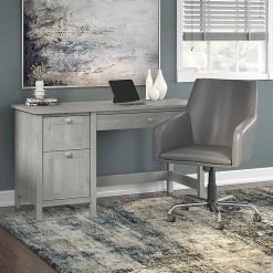 Bush Furniture Broadview 60″ Computer Desk Bundle, Pure White (BD029WH) – Laminate Office Desk