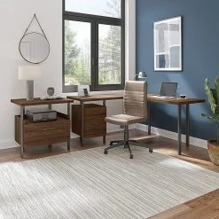 Bush Furniture Architect 60″W L-Shaped Desk with Drawers – Modern Walnut (ACD260MW-03K)
