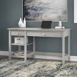 Bush Furniture Broadview 54″ W Laminate Computer Desk with Shelves, Pure White (BDD154WH-03)
