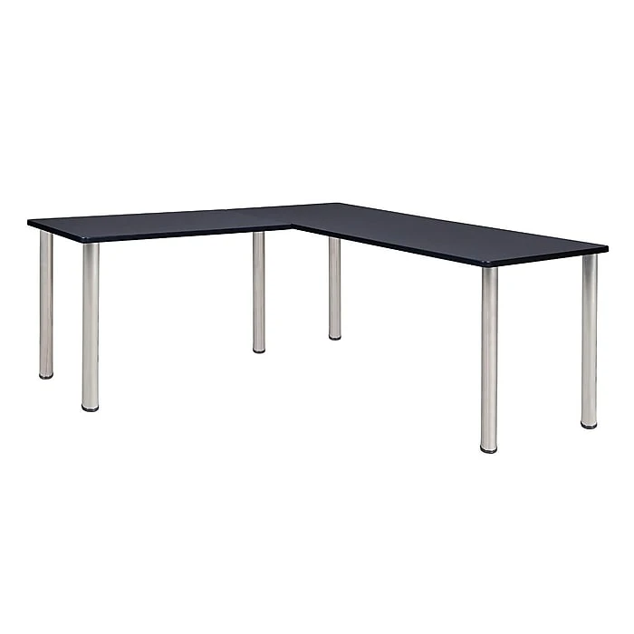 - Grey laminate desktop is scratch, stain and scald resistant and wipes clean easily and is finished with a black T-Mold edge band