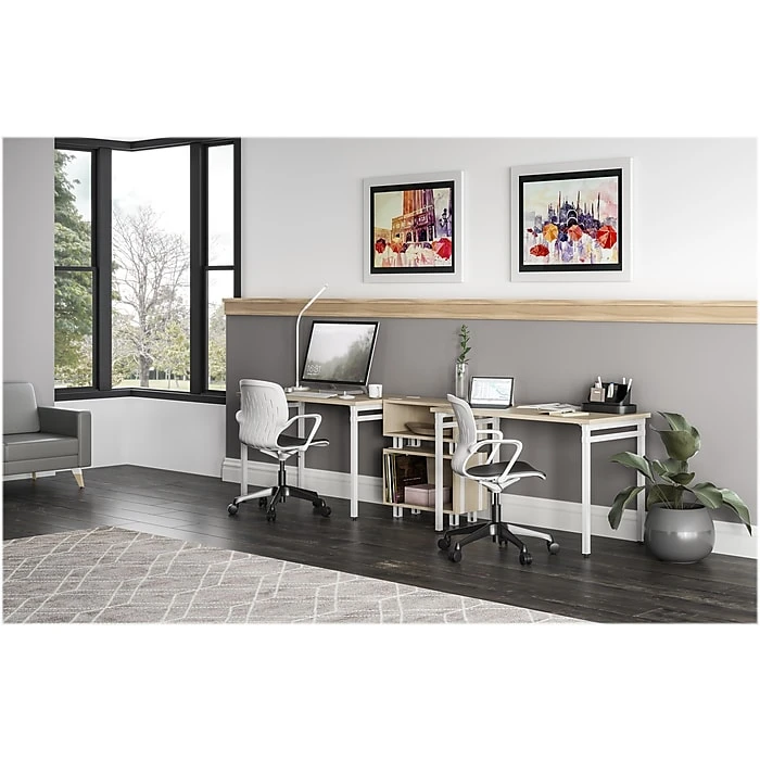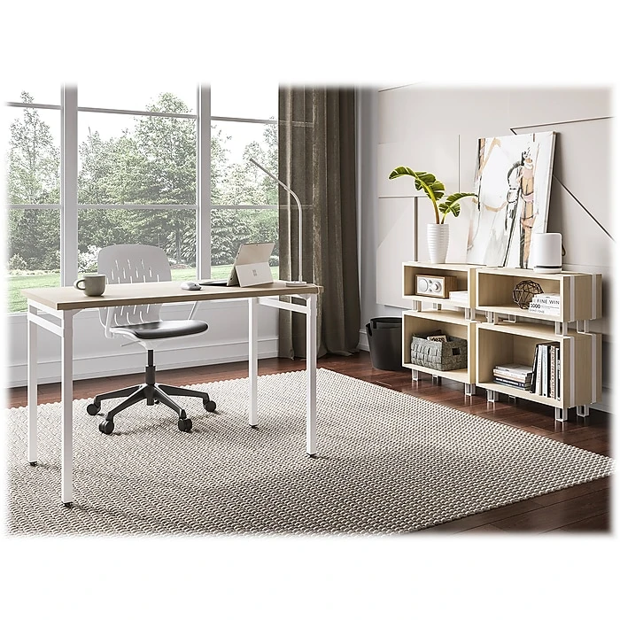 Create a supportive home office or learning space with the Safco Ready distinctive, modern desk. If you’re ready to abandon your kitchen table or couch for something more sophisticated, this quick-shipping, easy-to-assemble desk is a smart solution. Beige wood laminate with a white powder-coated steel frame complements any decor, while the desk’s versatile design scales up or down to suit spaces large and small. What’s more, it’s made in the USA, guaranteeing quality and quick, damage-free delivery.