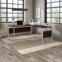 Bush Business Furniture Hybrid 60″ W Modern Hickory Computer Desk – Laminate/Steel HYD260MH