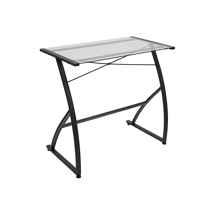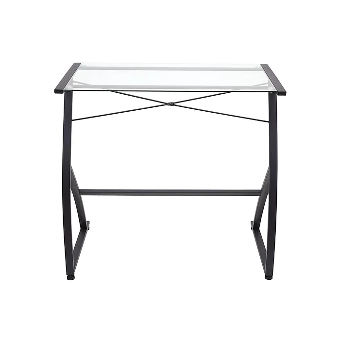 - Tempered-glass top with solid black metal frame refreshes your workplace without compromising functionality