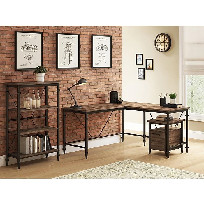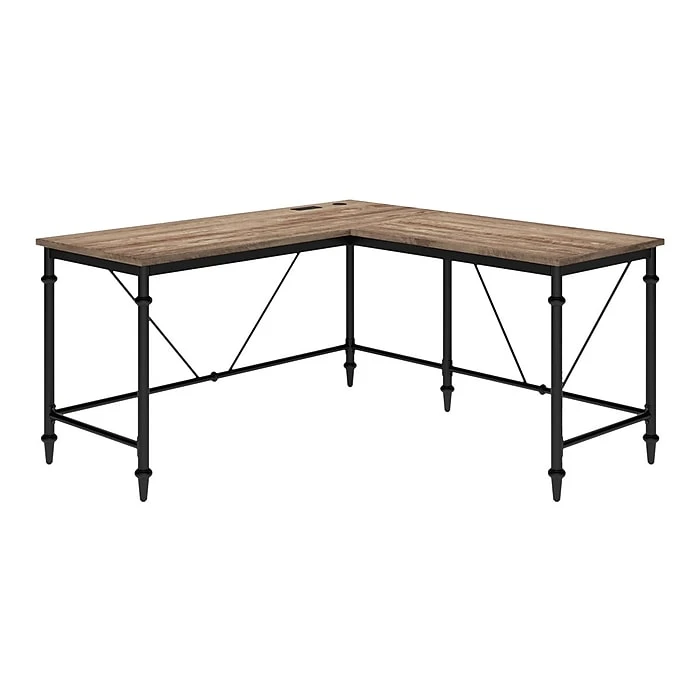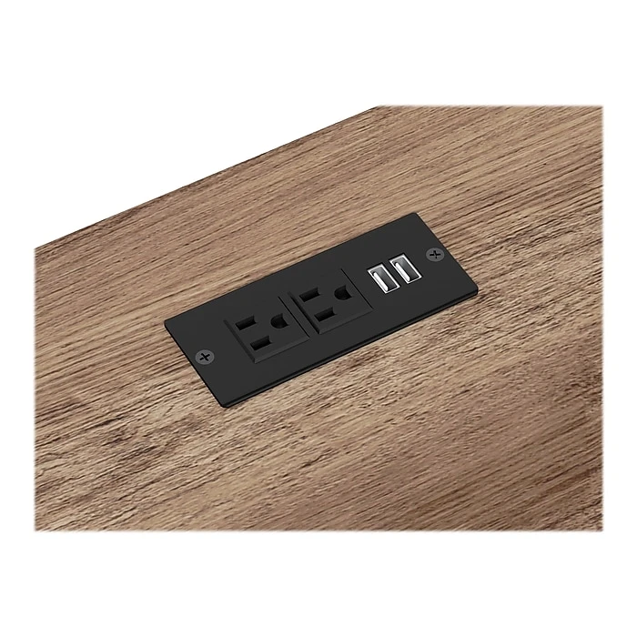 The Thomasville Furniture Breslyn L-shaped desk features a premium antimicrobial laminate work surface to reduce the growth of bacteria on the desk surface. In addition to a healthful work surface, the rustic transitional design offers ample space to keep you organized and productive. The work surface provides space for two monitors, a keyboard, a mouse, and other desktop necessities. The power strip will conveniently keep you connected to a power supply with two power outlets and two USB ports. The cord management grommet will also help keep your desktop neat and tidy.